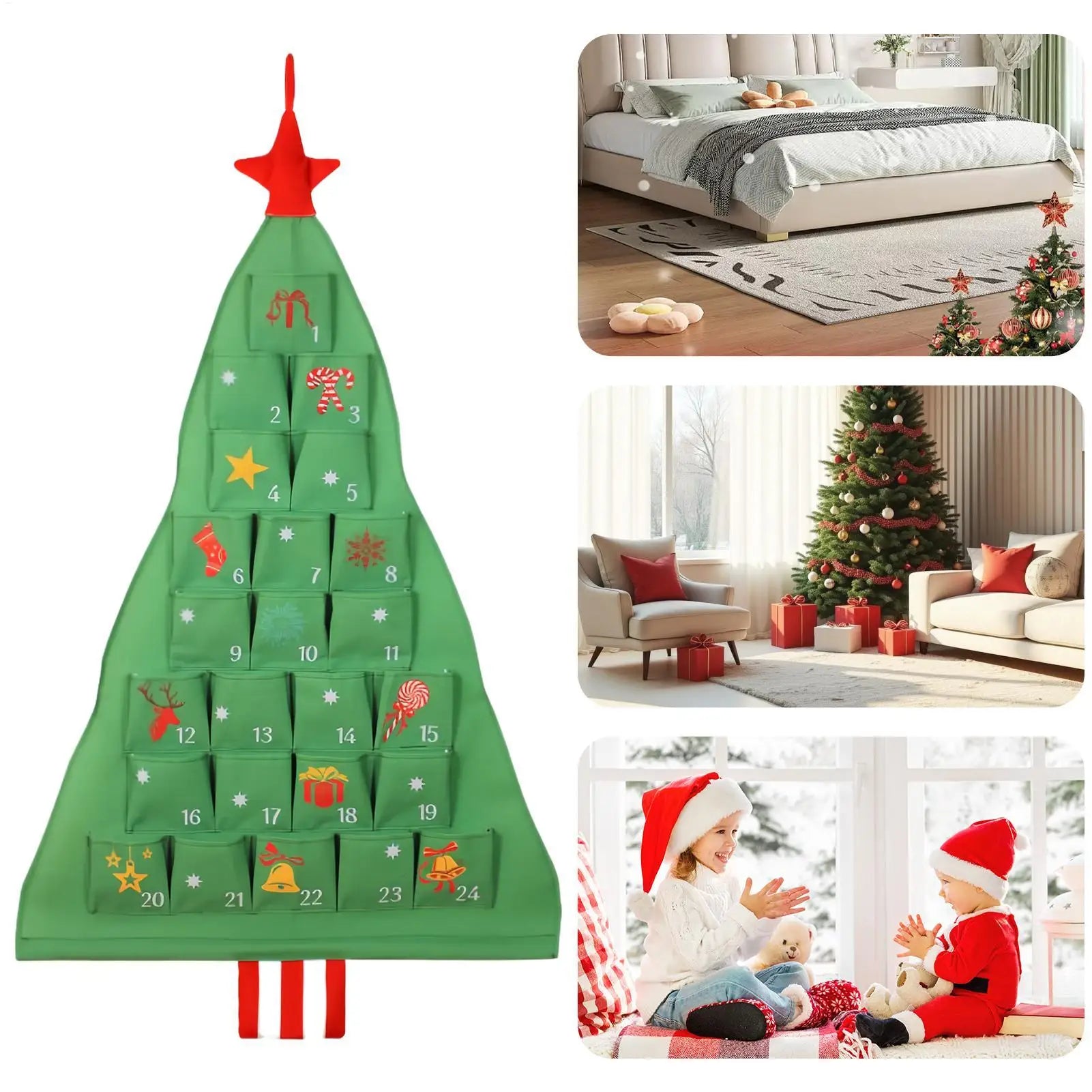 Made from durable, soft cloth material, this reusable hanging organizer brings warmth and excitement to your home every year. The tree-shape design makes it a standout decoration for any wall, door, or hallway, adding instant holiday spirit.